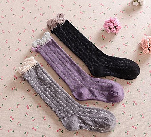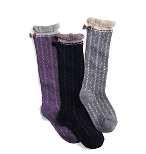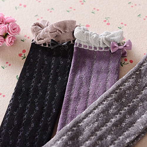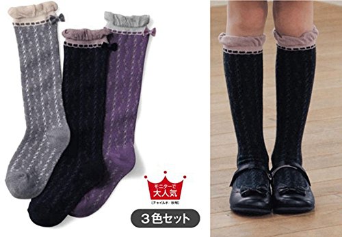 [インソミラ] InSomila ガールズ ハイソックス 靴下 3足セット 蝶結び フォーマル 入学式 卒業式 冠婚葬祭 可愛い キッズ 女の子 紫黒灰 M