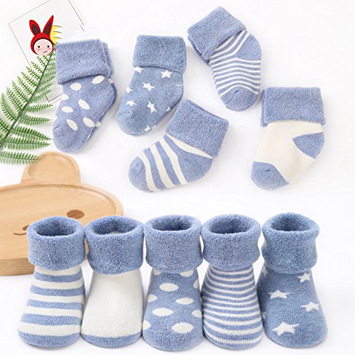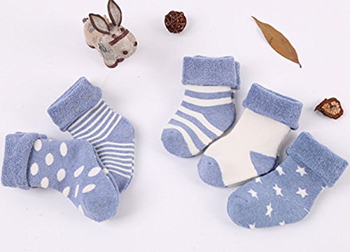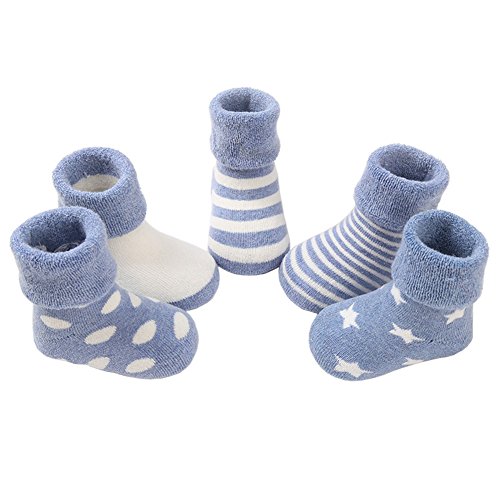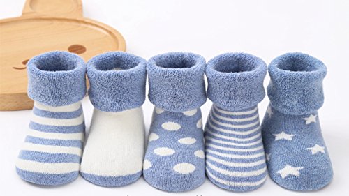 [インソミラ] InSomila ベビー ソックス 靴下 保温 秋冬 ベビー キッズ 赤ちゃん 新生児 お祝い 出産 祝い ムール用 柔らかい 5足 セット (SS 0~1歳, ブルー)