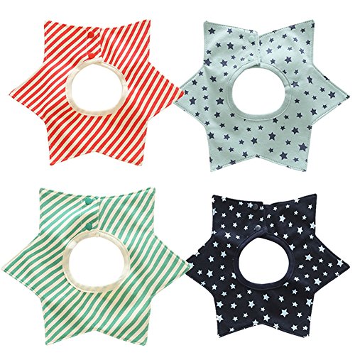 [インソミラ] InSomila ベビー スタイ コットン よだれかけ スタイ バンダナ お食事エプロン スナップビブ よだれカバー セット 調節可能 コットン100% 厚手スカーフ風 カワイイ 出産祝い 贈り物 4枚セット (A)