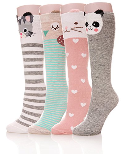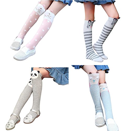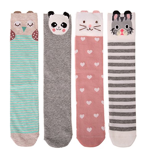 [インソミラ] InSomila ガールズハイソックス ソックス 4足セット キッズ 子供 靴下 可愛い 動物柄 女の子 くつした