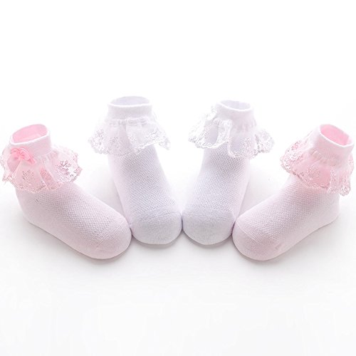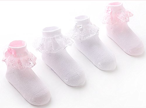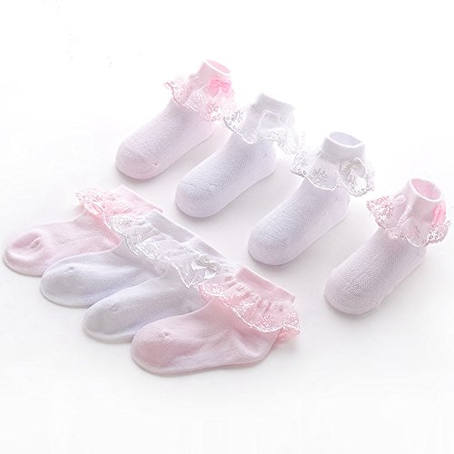[インソミラ] InSomila 夏 子供のソックス 綿 子供靴下 キッズ ソックス 超薄型 メッシュ 4足 セット 女の子 お姫様 リボン ベビー シンプル カラー 柔らかい (M(4~6歳))