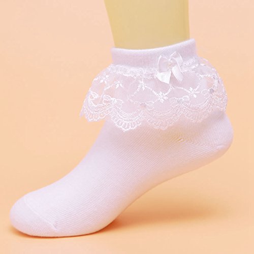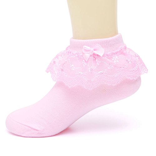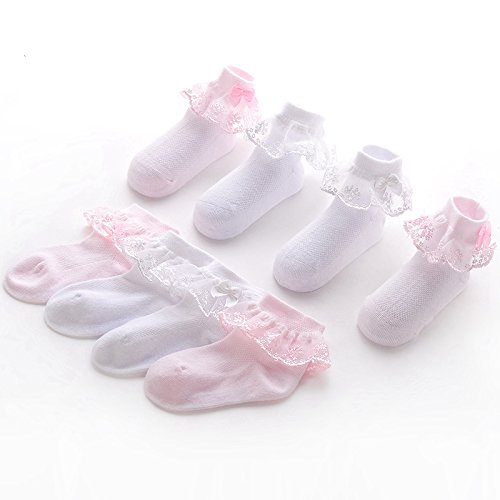 [インソミラ] InSomila 子供レース ソックス リボン 靴下 こども 4足組 靴下通販 女の子 キッズ 靴下 フォーマルソックス ピンク ホワイト L