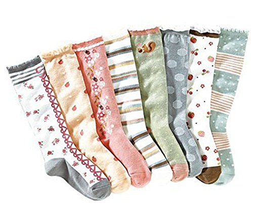 [インソミラ] InSomila 子供 靴下 女の子 ハイソックス ソックス 8足セット お姫様 のびのびソックス ガールズ