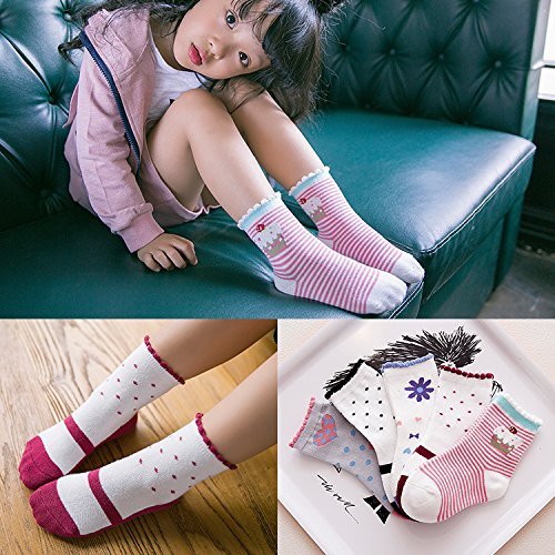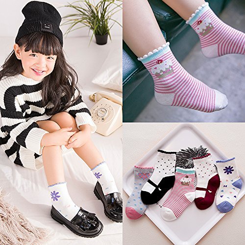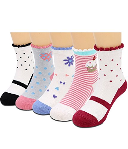 [インソミラ] InSomila 子供 靴下 キッズ ソックス お姫様 花柄 靴柄 ジュニア 5足 キッズ クルー丈 カラフル 女の子 L
