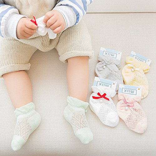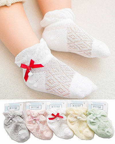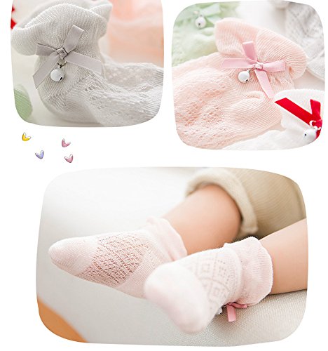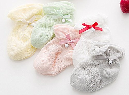 [インソミラ] InSomila 夏 子供のソックス 綿 子供靴下 キッズ ソックス 超薄型 メッシュ 5足 セット 女の子 お姫様 リボン 鈴 ベビー シンプル カラー 柔らかい (S)