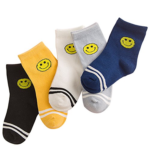 [インソミラ] InSomila キッズ ソックス 5足セット 可愛い 笑顔 靴下 子供 くつした 綿 S
