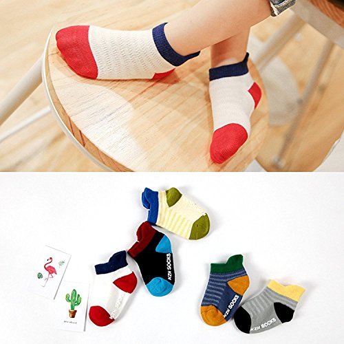 [インソミラ] InSomila 夏 子供のソックス 綿 子供靴下 ベビーソックス 超薄型 メッシュ 5足 セット 女の子 男の子 ベビー シンプル カラー 柔らかい 横縞 (S)