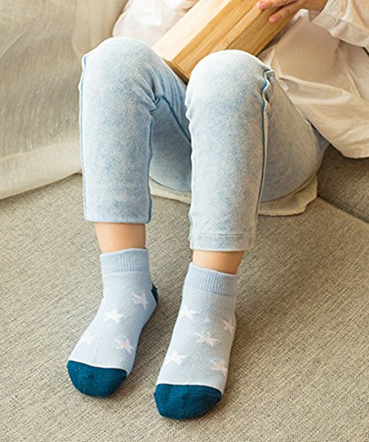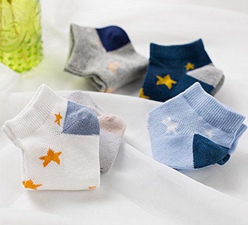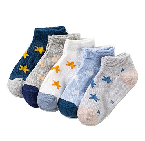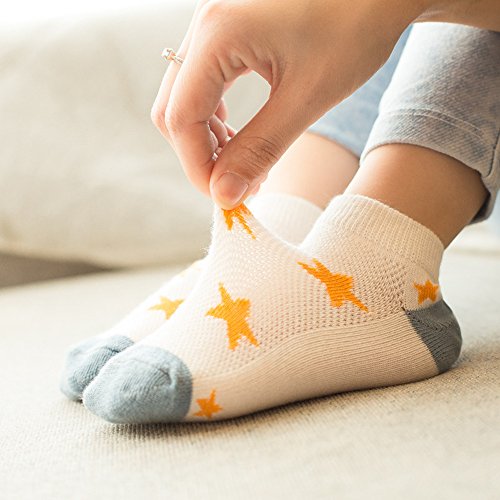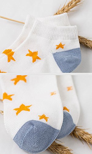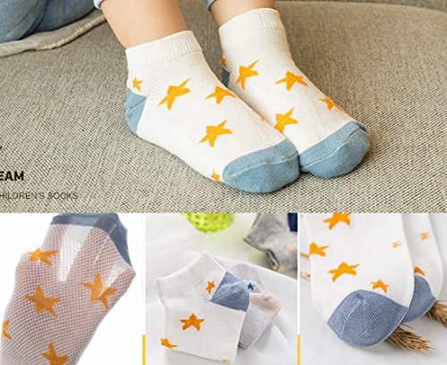 [インソミラ] InSomila 夏 子供のソックス 綿 子供靴下 ベビーソックス 超薄型 メッシュ 5足 セット 女の子 男の子 ベビー シンプル カラー 柔らかい 星柄 (3~5歳, 星柄)
