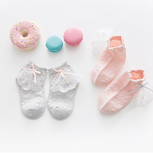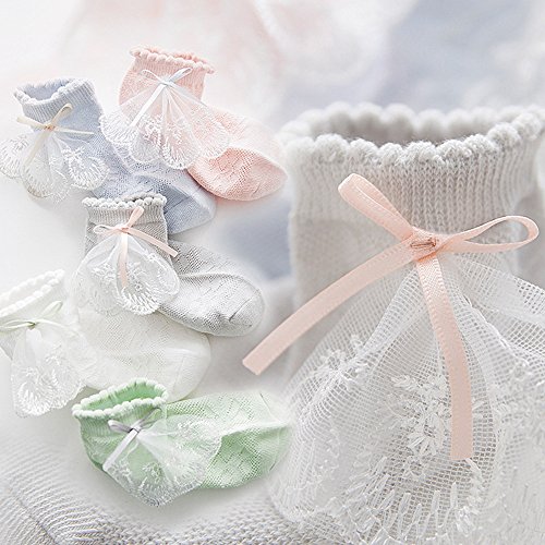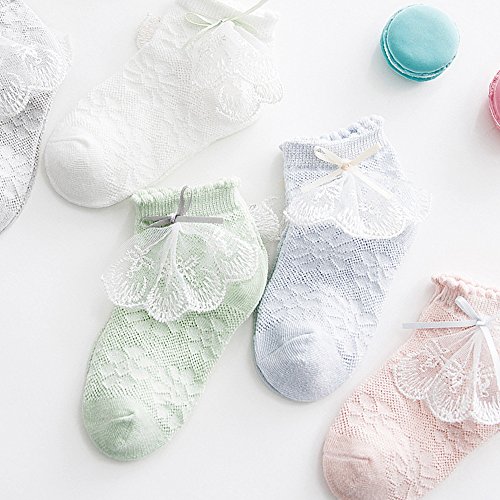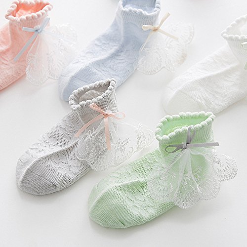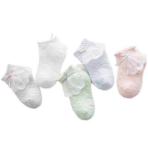 [インソミラ] InSomila 夏 子供のソックス 綿 子供靴下 キッズ ソックス 超薄型 メッシュ 5足 セット 女の子 お姫様 リボン レース ベビー シンプル カラー 柔らかい (M)