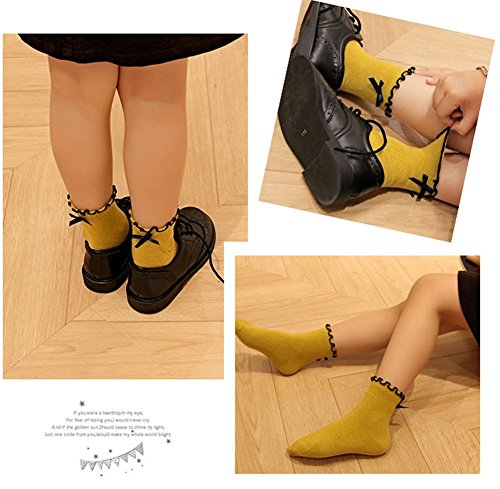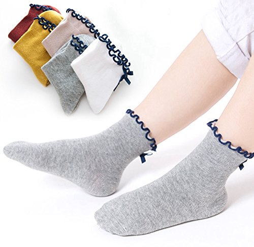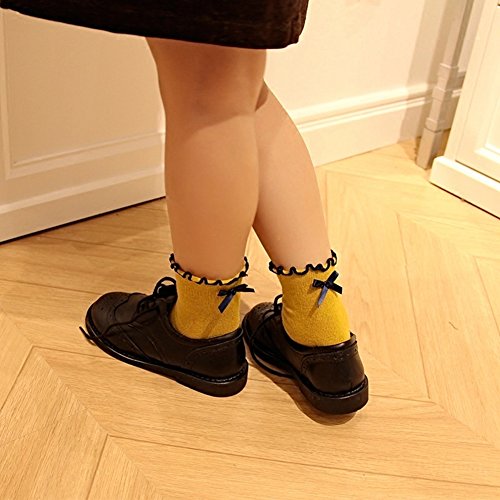[インソミラ] InSomila 夏 秋 子供のソックス 綿 子供靴下 キッズ ソックス メッシュ 5足 セット 女の子 お姫様 リボン ベビー シンプル カラー 柔らかい (秋冬タイプ L(19-21cm/9-12歳))