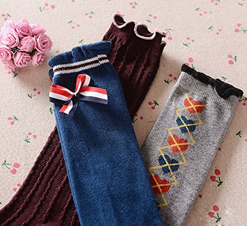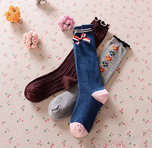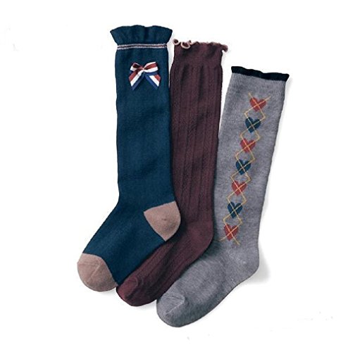 [インソミラ] InSomila ガールズ ハイソックス 靴下 3足セット 蝶結び フォーマル 入学式 卒業式 冠婚葬祭 可愛い キッズ 女の子 紫黒灰 (B M:(15~19cm/3~5歳))