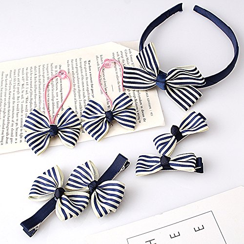 [インソミラ] InSomila ベビー ヘアバンド ヘアアクセサリー 6点セット 髪飾り 髪留め カチューシャ 赤ちゃん ベビー 花 かわいい 出産祝い 誕生日 プレゼント (ネイビー 横縞)