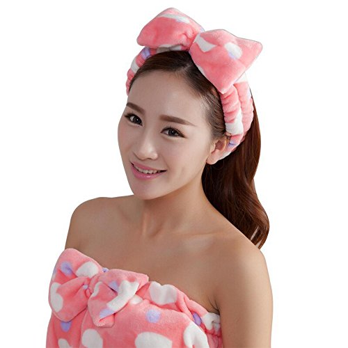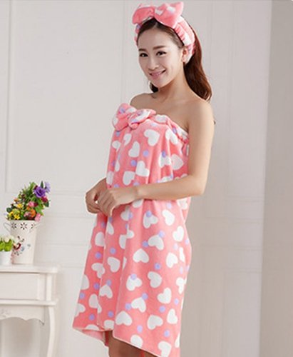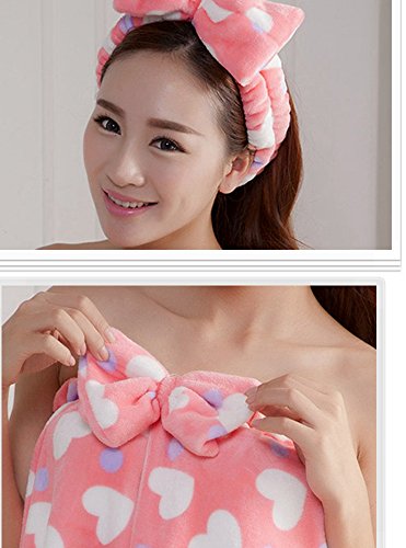 [インソミラ] InSomila 大人用 巻きタオル 洗顔 ヘアバンド 2点セット ラップタオル プール タオル バスタオル スイミング 着替え バスタオル レディース 女の子 (ピンク)