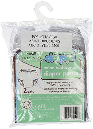 Dappi Waterproof 100% Nylon Diaper Pants, 2 Pack, White, Small Size: Small, Model: 42001 by American Baby Company