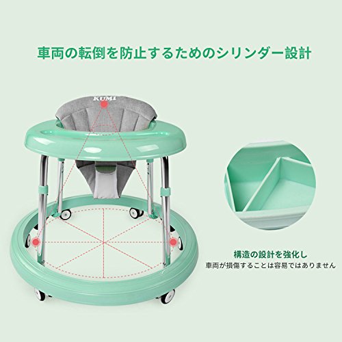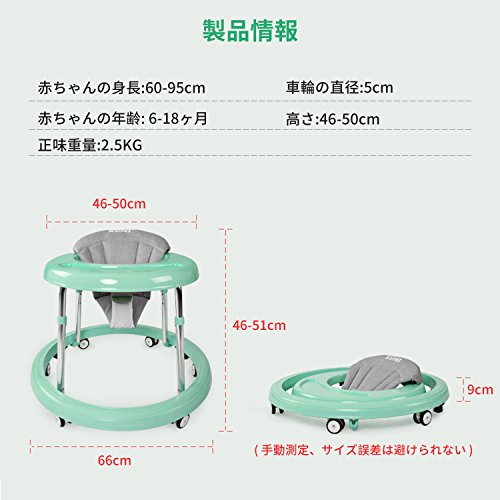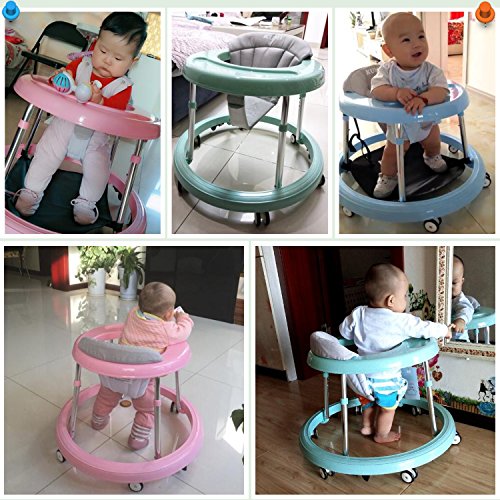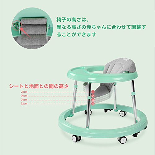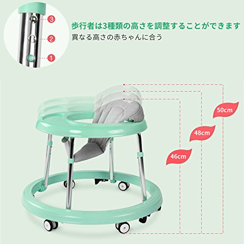 Infant Shining 簡単折り畳みベビーウォーカー、調整可能な高さ、転覆を防ぐ、6〜18ヶ月、60〜90cmの赤ちゃんに適しています 折りたたみ式歩行器 (Green)