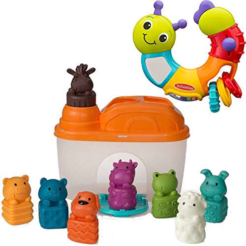 Infantino Topsy Turvyツイスト再生Caterpillar Rattle and Animal Shapes SortingバーンアクティビティLearningおもちゃfor赤ちゃん/幼児用おもちゃ
