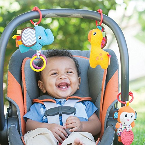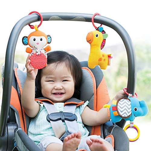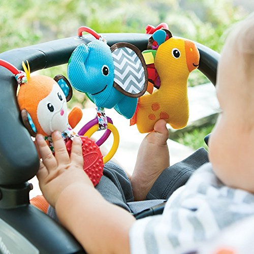 Infantino tag along travel pals. Little travelers will have triple the fun with this happy tag-along trio. These easy-to-attach, playful pals encourage reaching, batting, grabbing and lots of giggles.