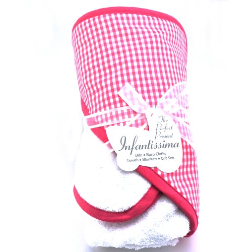 Infantissima Hooded Towel, Gingham Shocking Pink