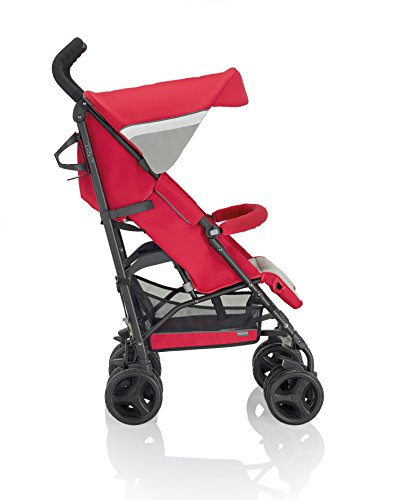 Included Accessories: Bumper bar, cup holder, rain cover, padded shoulder strap and matching storage basket;Reclining, 4-position backrest and adjustable footrest for maximum comfort of your baby;Large hood with peek-a-boo window that can be tilted forwards to serve as a sun visor, equipped with additional hood flap;Convenient carry handle for easy use and storage on the go;5-point adjustable safety harness