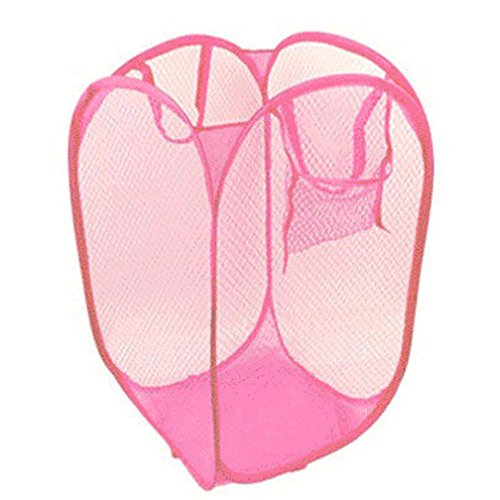 服ストレージバスケット、inkach折りたたみ式洗濯服ランドリーバスケットバッグPop Up Hamperメッシュストレージ折りたたみ式ボックス One size ピンク HM-1