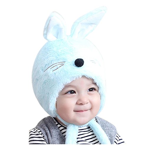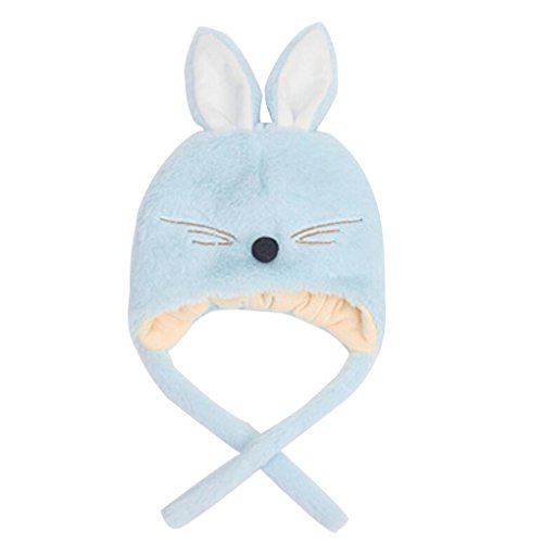 inkachベビー女の子冬イヤーフラップハットかわいいウサギ耳暖かいぬいぐるみニット帽キャップ One Size ブルー