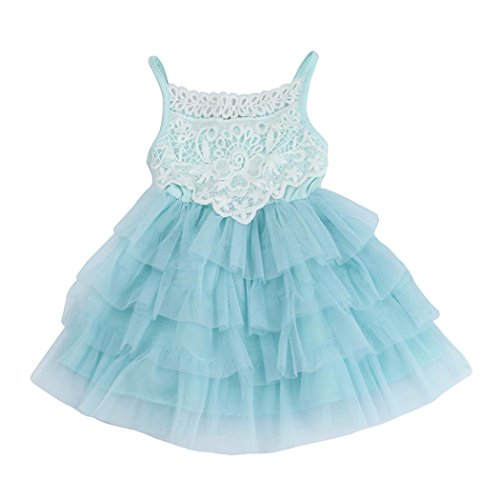 Baby Princessフリルドレス、inkach Little Girlsノースリーブサンドレスレースレイヤードチュチュパーティードレス 110 ブルー HM-1