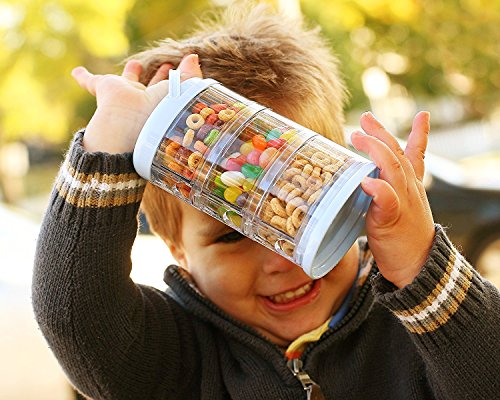 Full 8 ounces of powdered formula or .33 cup of dry goods fit in each compartment;Store rice cereal and use as a serving bowl;Top rack dishwasher safe;Removable funnel lid for each section for ease of use;Separate compartments so contents do not mix