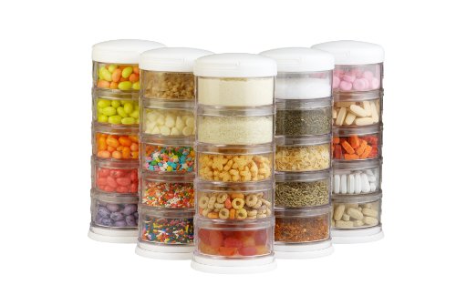 Full 8 ounces of powdered formula or .33 cup of dry goods fit in each compartment;Store rice cereal and use as a serving bowl;Top rack dishwasher safe;Removable funnel lid for each section for ease of use;Separate compartments so contents do not mix