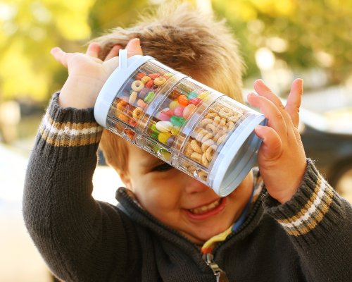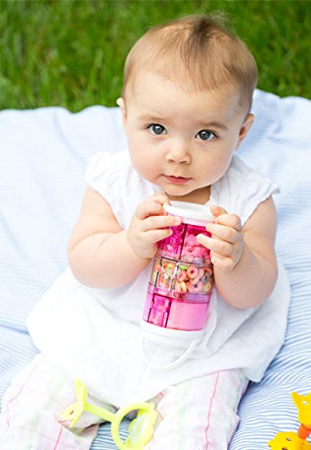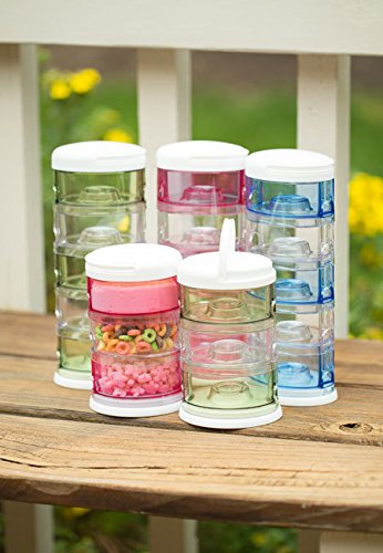 Full 8 ounces of powdered formula or .33 cup of dry goods fit in each compartment;Store rice cereal and use as a serving bowl;Top rack dishwasher safe;Removable funnel lid for each section for ease of use;Separate compartments so contents do not mix
