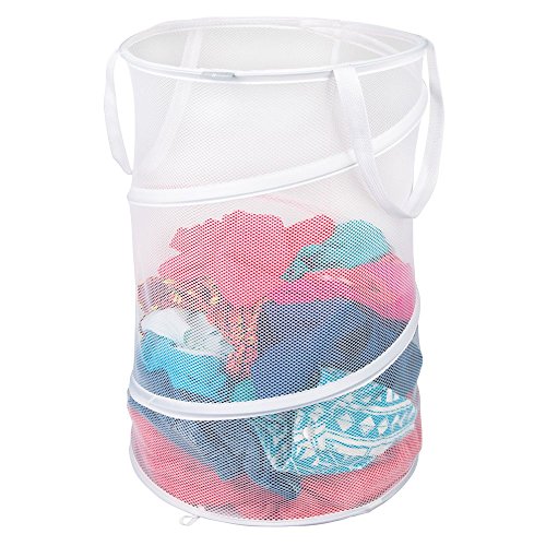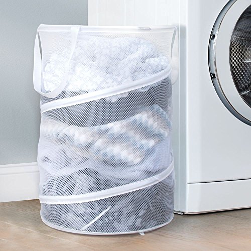 InterDesign 洗濯かご ランドリーバスケット 洗濯物入れ ランドリー収納 脱衣かご 折り畳み式 メッシュ 取っ手付き Mesh PopUp ホワイト 06090EJ