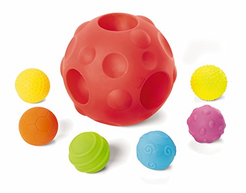 本セットには、転がし、弾ませ、ねじり、および探求用の7個のボールが入っています。大型ボールには表面がさまざまな小型ボール6個を便利に収納できます。各ボールの表面は、赤ちゃんが区別できるように形状と色が異なっています。
