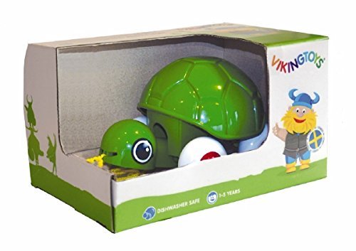 Little ones learning to walk will enjoy this bright green pull along turtle. Viking Toys are sized just right for little hands and have no sharp edges.