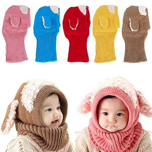 - ベビー & キッズ 用 かわいい うさぎちゃん風 ニット帽 です。首まで保護してあったか、マフラーいらず