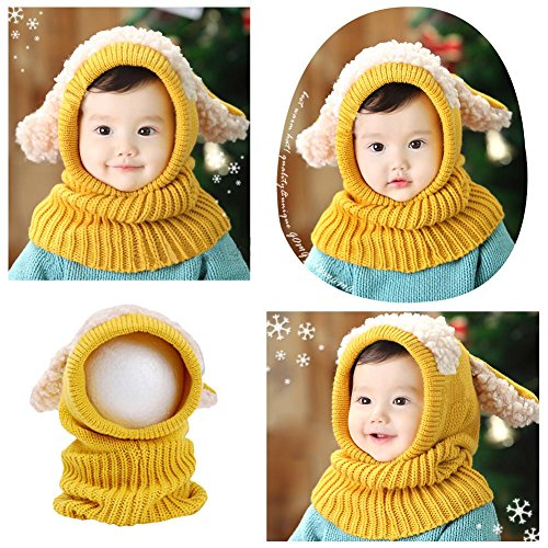 IntiPal うさぎちゃん風 ニット帽 ニット帽子 ベビー キッズ 赤ちゃん 子 子供 用 かわいい 防寒 (黄色)