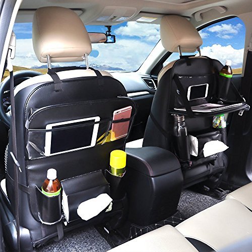 マルチポケット付きCar Back Seat Organizer for Kids旅行ストレージバッグwithカップボトルiPad電話タブレットホルダー、大容量、ブラック