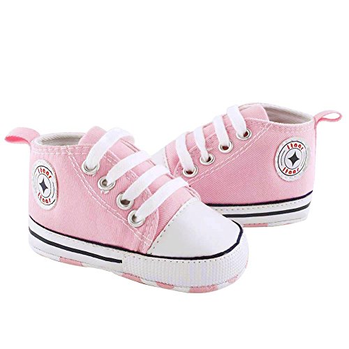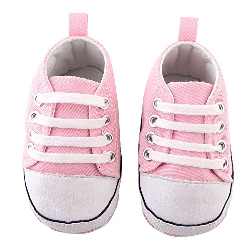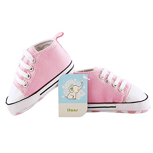 Itaar 幼児キャンバススニーカー ベビーシューズ 赤ちゃん プレウォーカー レースアップシューズ 可愛い 滑り止め 柔らかい クラシック 耐久性 新生児用トレーナー 男 女 3〜18ヶ月 3サイズ 5色 (13cm, ももいろ)
