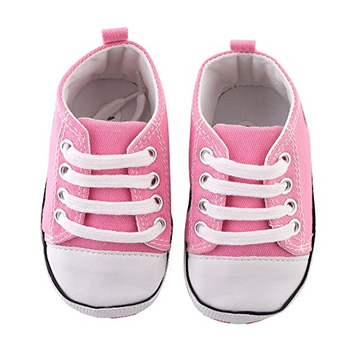 Itaar 幼児キャンバススニーカー ベビーシューズ 赤ちゃん プレウォーカー レースアップシューズ 可愛い 滑り止め 柔らかい クラシック 耐久性 新生児用トレーナー 男 女 3〜18ヶ月 3サイズ 5色 (13cm, ピンク)