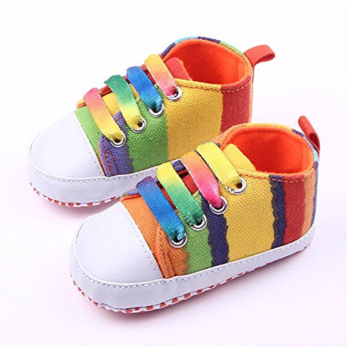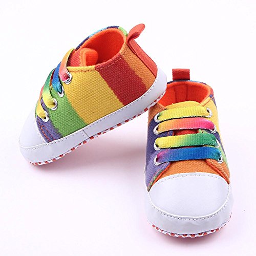 Itaar ベビー靴 子供靴 キャンバスシューズ ファーストシューズ カラフルー 女の子 通気 脱着簡単 カジュアル 春秋 (12, レインボー)