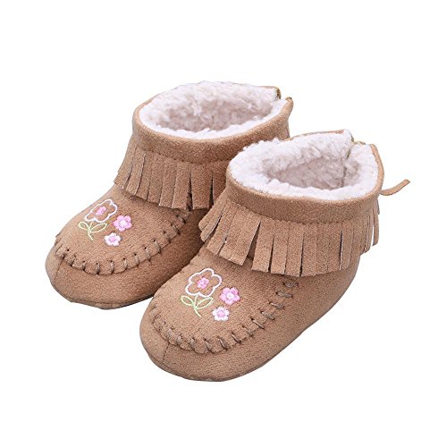 Itaar ベビーシューズ 美しい流苏 歩行練習用 滑り止め付 秋冬 防寒 かわいい キッズ 子供 新生児 女の子 3-18ヶ月に(11.5, ブラウン)