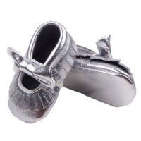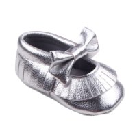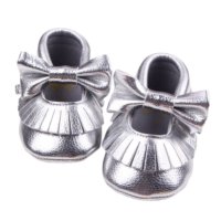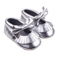 Itaar ベビーシューズ 女の子 0-18ヶ月 可愛い 蝶結び飾り付 (11cm, シルバー)