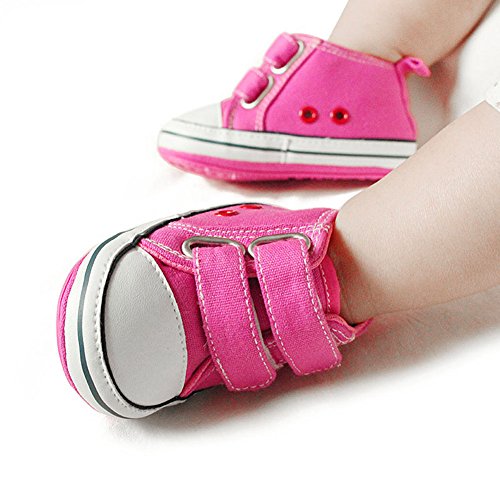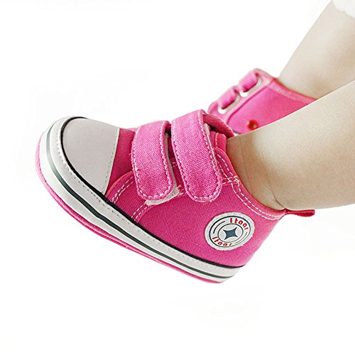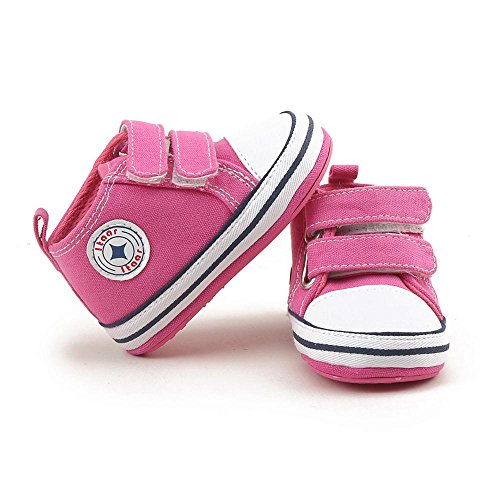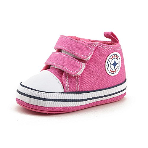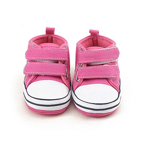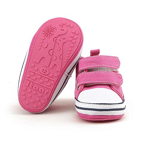 Itaarベイビーキャンバススニーカー プレウォーカーシューズ 乳児靴 赤ちゃん 幼児クラシック デュアルストラップ 滑り止め ソフトラバーソール 出産お祝い 誕生日プレゼント (11cm, ローズレッド)
