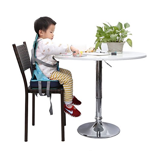 Itian お食事クッション ベビー用 食事チェア 赤ちゃん用 キッズ用 持ち運びやすい 折りたたみ ポーチ付き (ブルー)