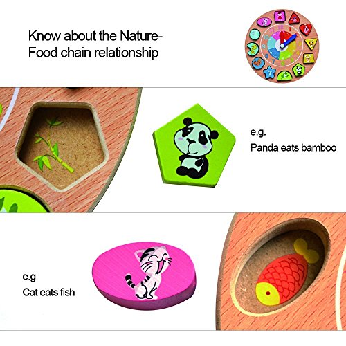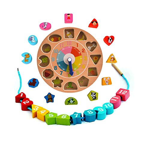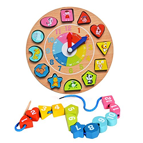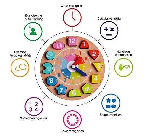 Itian 木のおもちゃ 時計積木 時計遊び クロック 積み木 形合わせ はめ込み ブロック パズル 幾何認識 数字認識 図形勉強 知育玩具