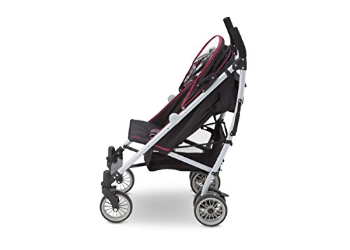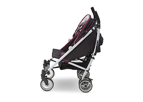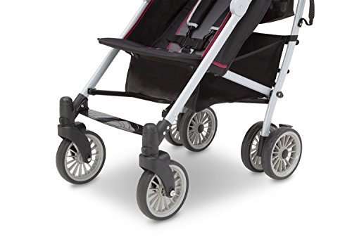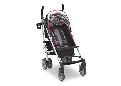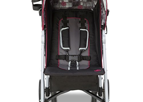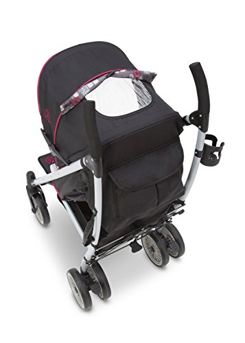 Extendable European-style canopy with sun visor and peek-a-boo window five-point safety harness with soft shoulder pads multi-position reclining seat;Reflective material on the safety harness and piping ensures you and your child can be seen at night parent cup holder;Abundant storage includes double rear canopy bags and mesh sides 7 wheels with front swivel and suspension system;Fold and go auto-lock latch for easy transport assembled dimensions: 30.5d X 20.3w X 42.1h; Folded dimensions: 12.4d X 9.8w X 42.5h;Product weight: 19.5 Lbs. JPMA certified; meets or exceeds and ASTM and applicable CPSC standards