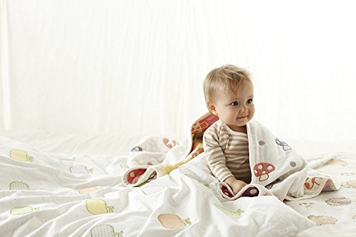 beauty factory 6重ガーゼ ベビーケット ふわふわ 赤ちゃん タオル 選べる カラー キノコ 苺 小足 (キノコ)