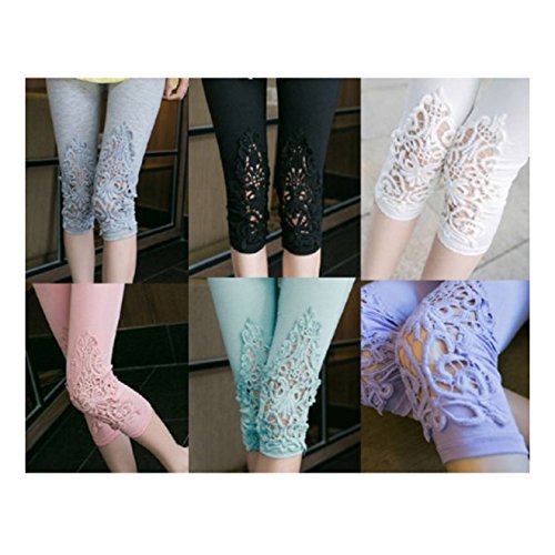 beauty factory 刺繍レギンス 七分丈 コットンレース 美脚スパッツ 選べる 6色 白 紫 灰色 黒 青 ピンク