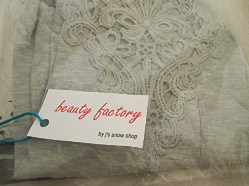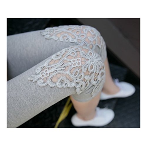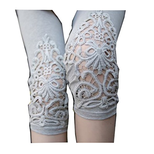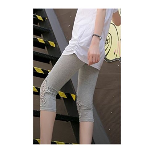 beauty factory 刺繍レギンス 七分丈 コットンレース 美脚スパッツ 選べる 6色 白 紫 灰色 黒 青 ピンク (灰色)