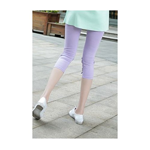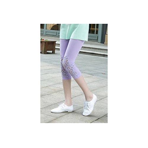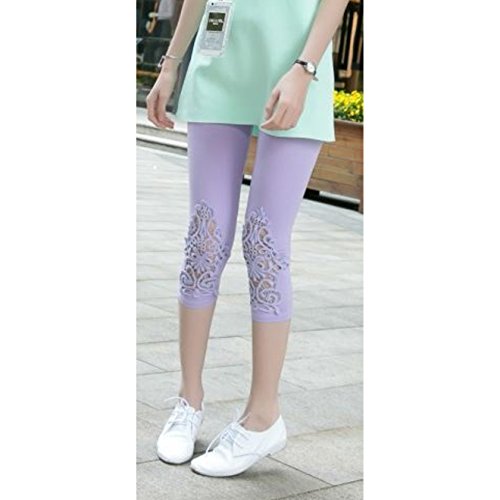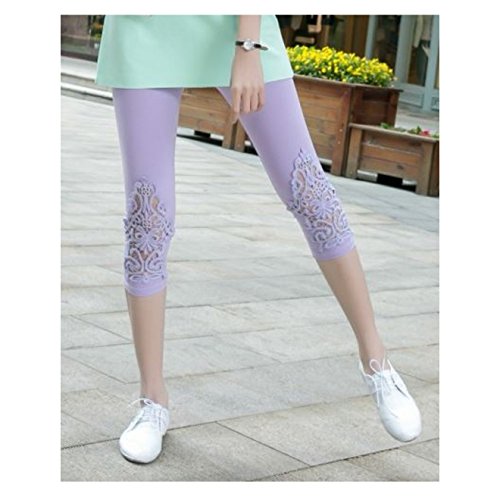 beauty factory 刺繍レギンス 七分丈 コットンレース 美脚スパッツ 選べる 6色 白 紫 灰色 黒 青 ピンク (紫)