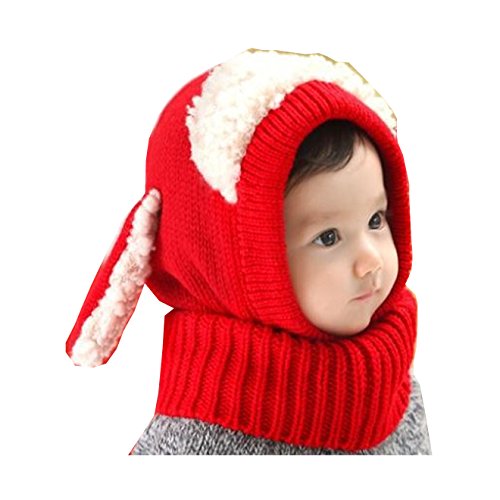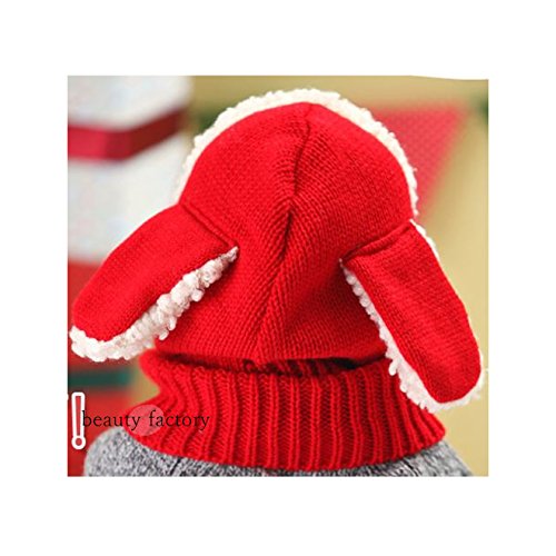 beauty factory うさちゃん風 ニット帽 帽子 ベビー キッズ 赤ちゃん 子供 選べる 5色 (赤)