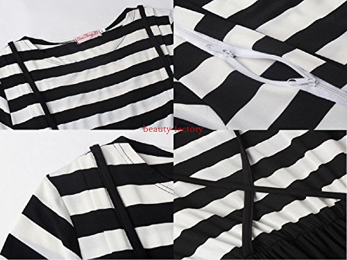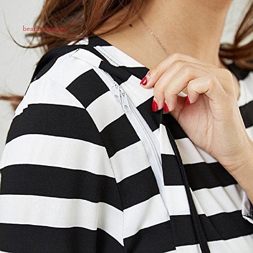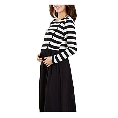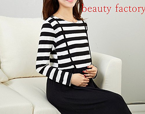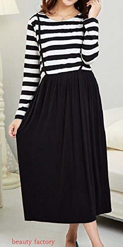 beauty factory マタニティ ワンピース ロング スカート シンプル 白黒 ボーダー柄 授乳口付き 選べる 長袖 半袖 サイズ (M, 長袖)